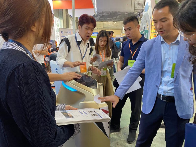 At the exhibition, Digicorp is situated in a prime location, attracting a large number of businesses to visit their booth. As one of the few companies offering smart solutions for restaurants, hotels, schools, hospitals, and more, Digicorp impresses visitors with live demonstrations of their robots. Additionally, attendees have the opportunity to personally experience the features of Keenon’s intelligent robots.