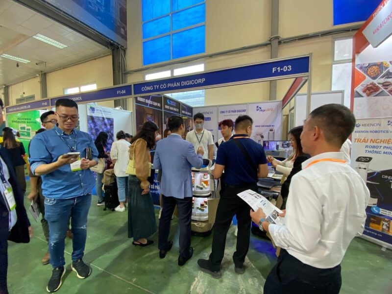 Công ty cổ phần Digicorp cũng góp mặt mang đến triển lãm là các dòng robot thông minh sử dụng trong nhà hàng, khách sạn, trường học, công xưởng, bệnh viện,…