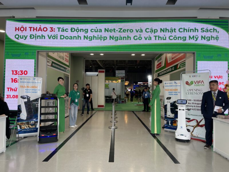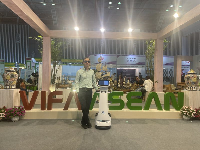 Ngày 29/08/2023 DIGICORP tự hào khi được hợp tác cùng đơn vị Triển lãm quốc tế đồ gỗ & mỹ nghệ xuất khẩu Việt Nam ASEAN 2023 (VIFA ASEAN 2023) diễn ra từ ngày 29/08 – 01/09/2023 tại Trung tâm hội chợ và triển lãm Sài Gòn (SECC) khi mang đến những người bạn robot phục vụ xinh xắn và nhanh nhẹn, tô điểm cho không khí hội chợ thêm sắc màu.