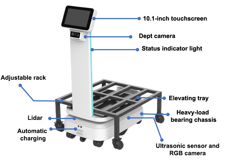 | Robot size (RxSxC): | 50*74*124 cm | Payload: | 150 kg |